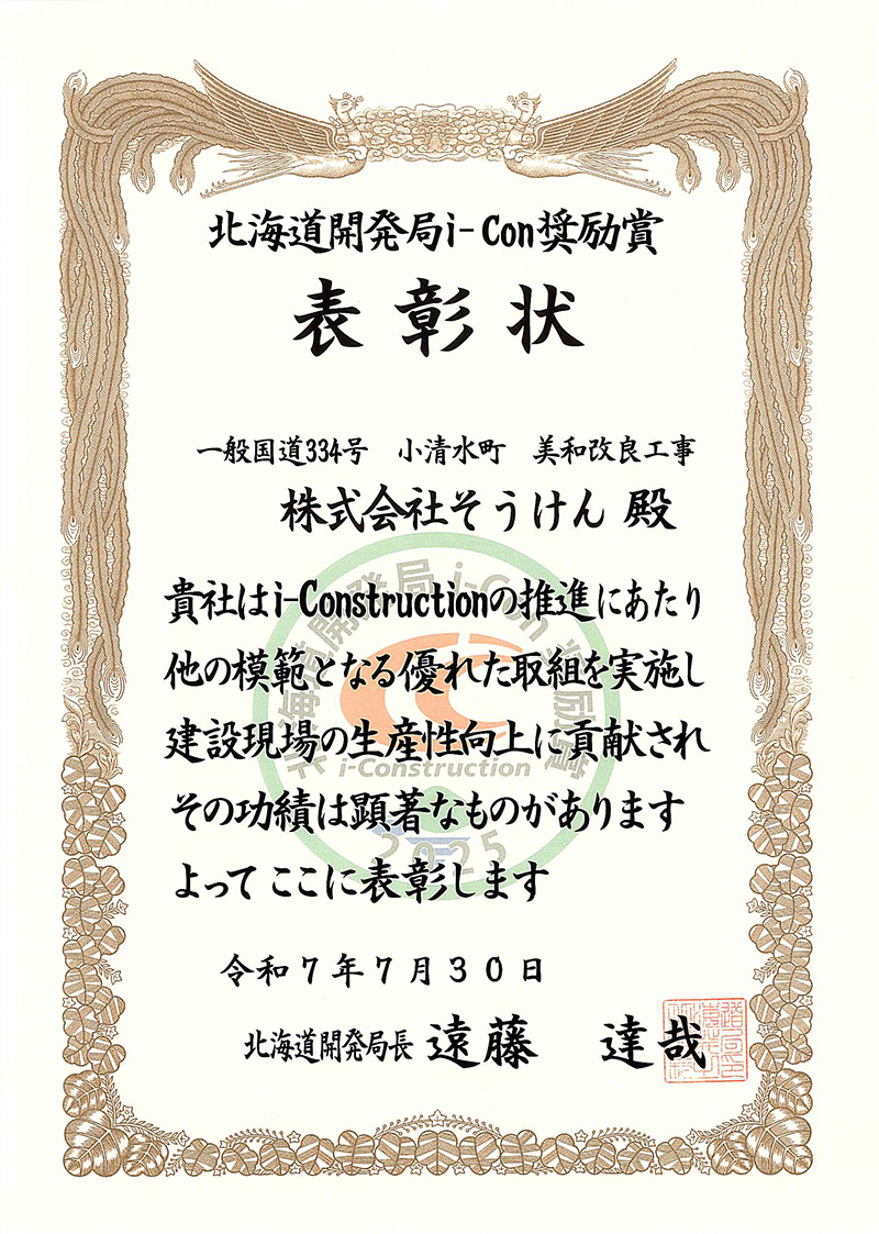 北海道水産林務部工事優秀業者表彰 知事表彰