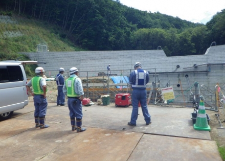 ・網走川中央地区野崎幹線用水路工事では現場事務所を確認したところ、安全掲示板等に全国安全週間の垂幕・週間予定等掲示され作業員・下請業者に周知されている。現地作業としては管布設・埋戻し作業状況を確認したが、重機械の合図者は確認しやすいチョッキ等を使用し的確に合図を行っていた。同じ作業の繰り返しとなるため慣れによるうっかりミスが出るかもしれないので危険予知活動を具体的に明示する事。